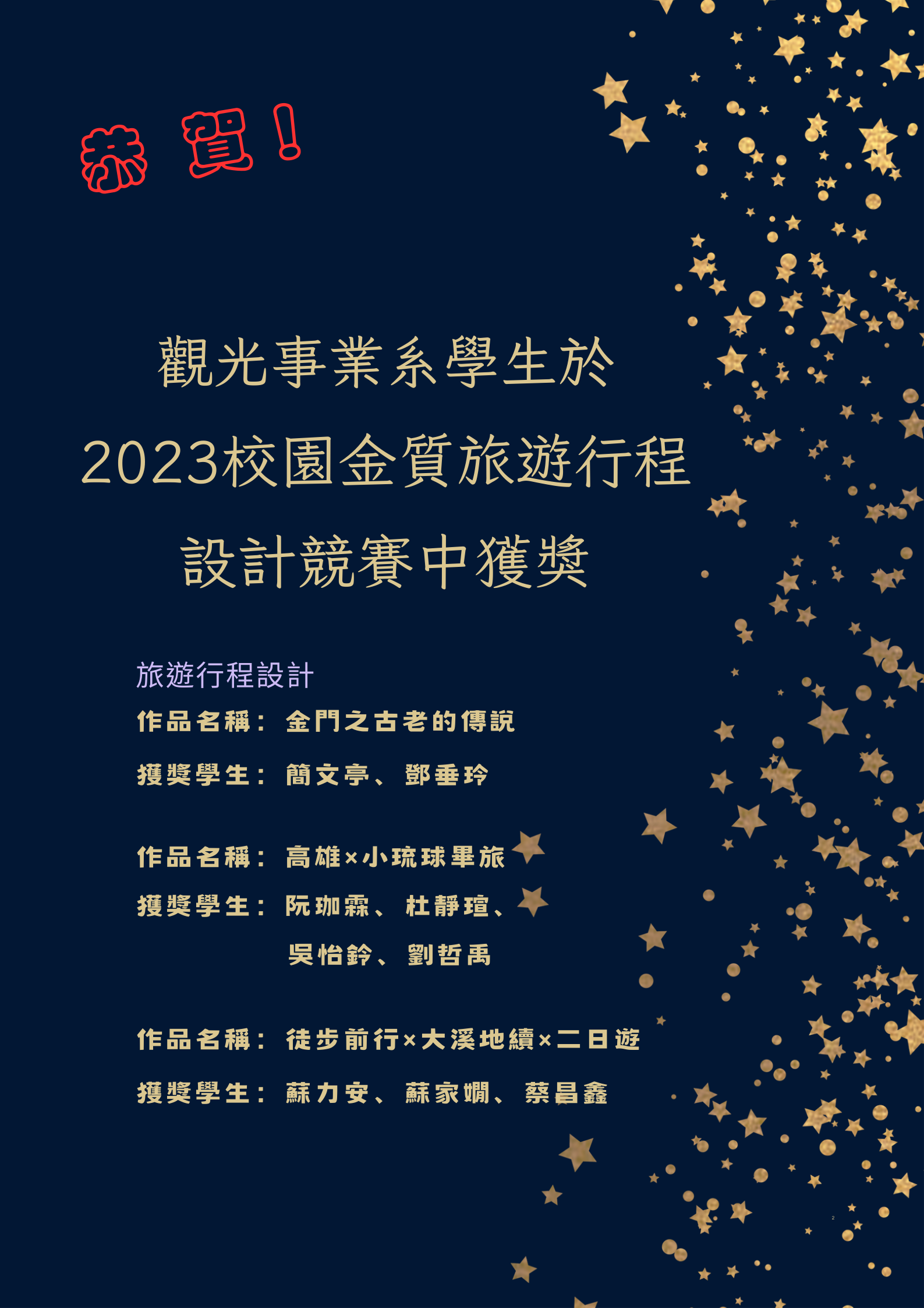 賀! 城市科大觀光系學生於2023校園金質旅遊行程設計競賽中獲獎